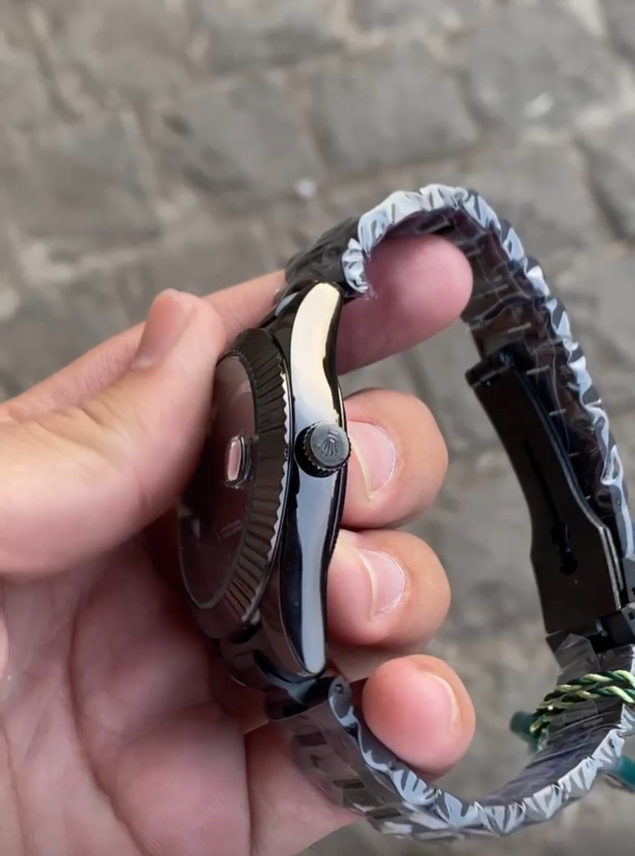 Black Case Premium Stainless Steel Day Date Watch For Men
