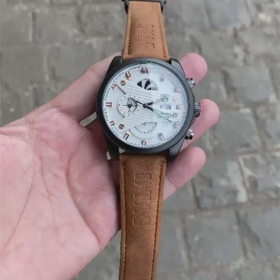 Broiwn And Black Case Premium Leather Strap CR7 Watch For Men