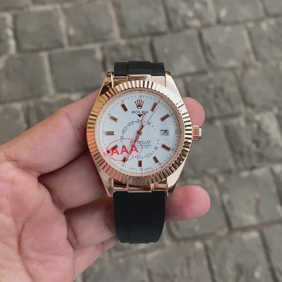 Rose Gold White Dial Rol__ex Sky Dweller Watch For Men