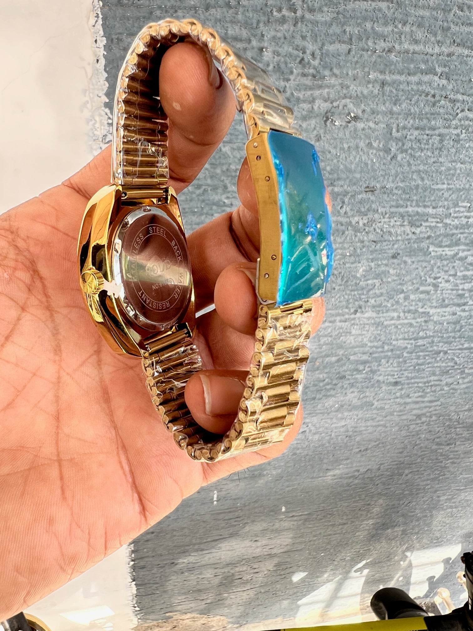 Gold Plated Round Diamond Dial Day Date Analog Watch For Men