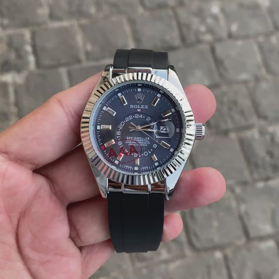 Silver Blue Dial Rol__ex Sky Dweller Watch For Men
